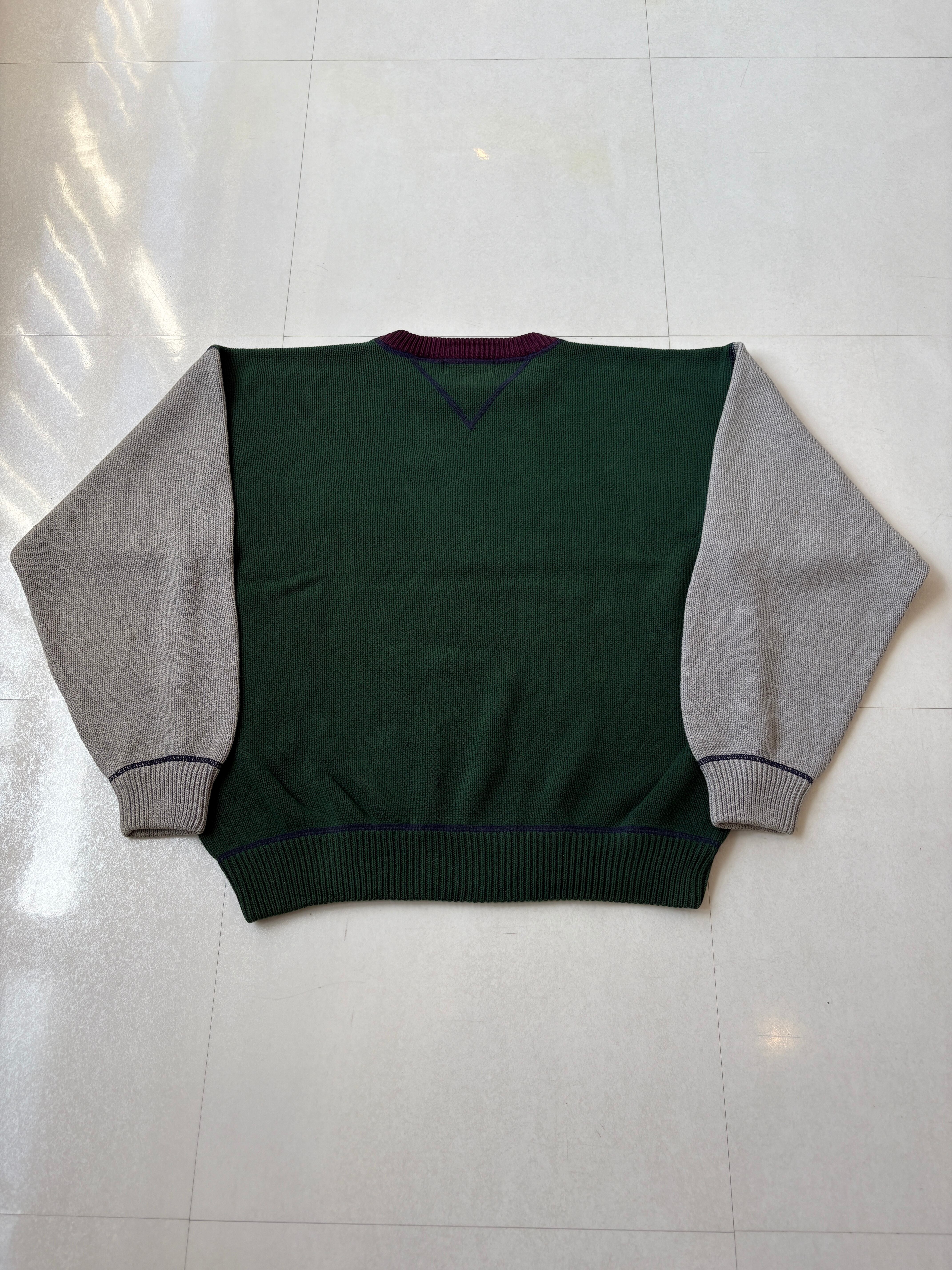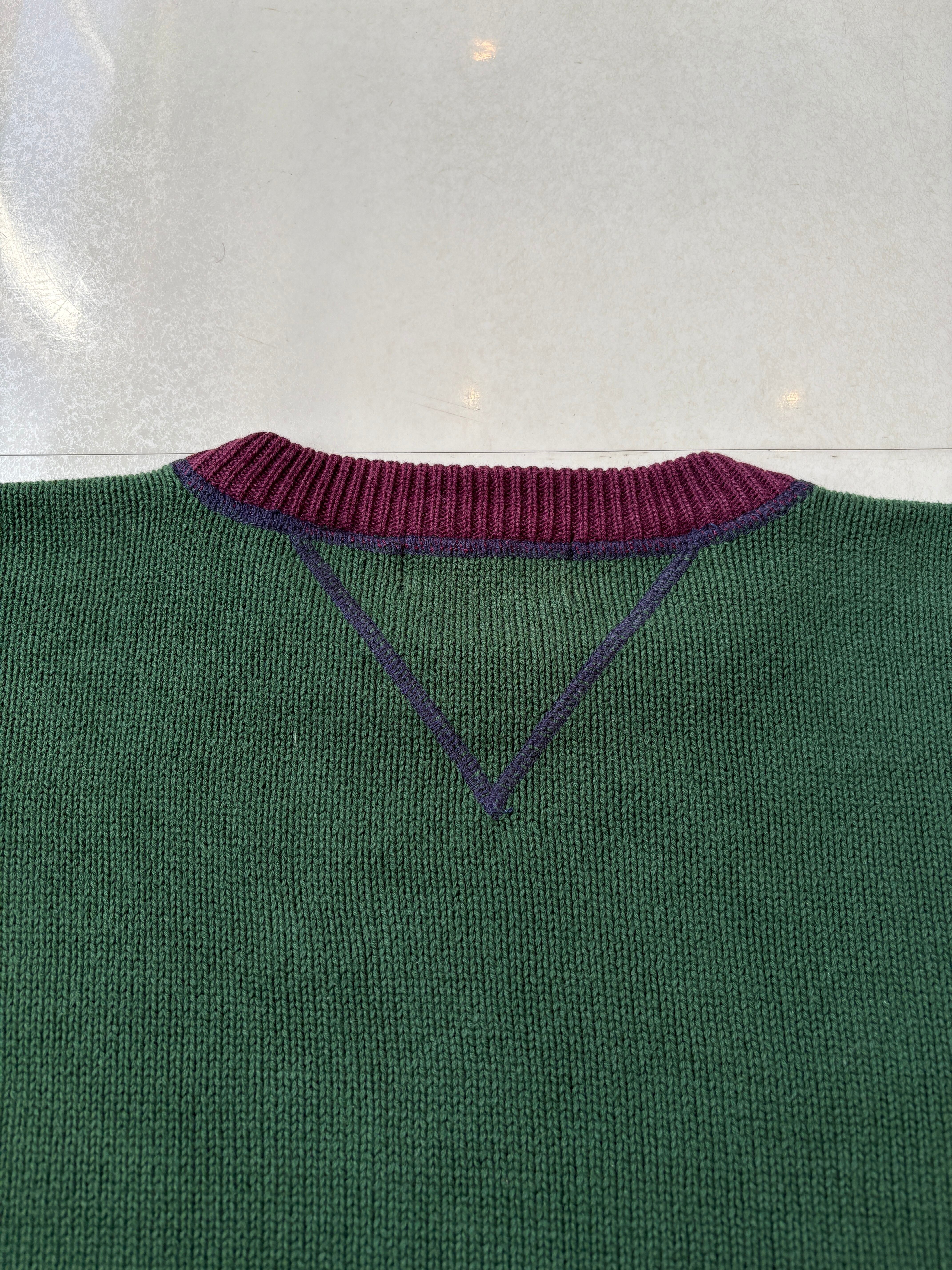 90s eddie bauer bith-side V cotton knit sweater crazy pattern