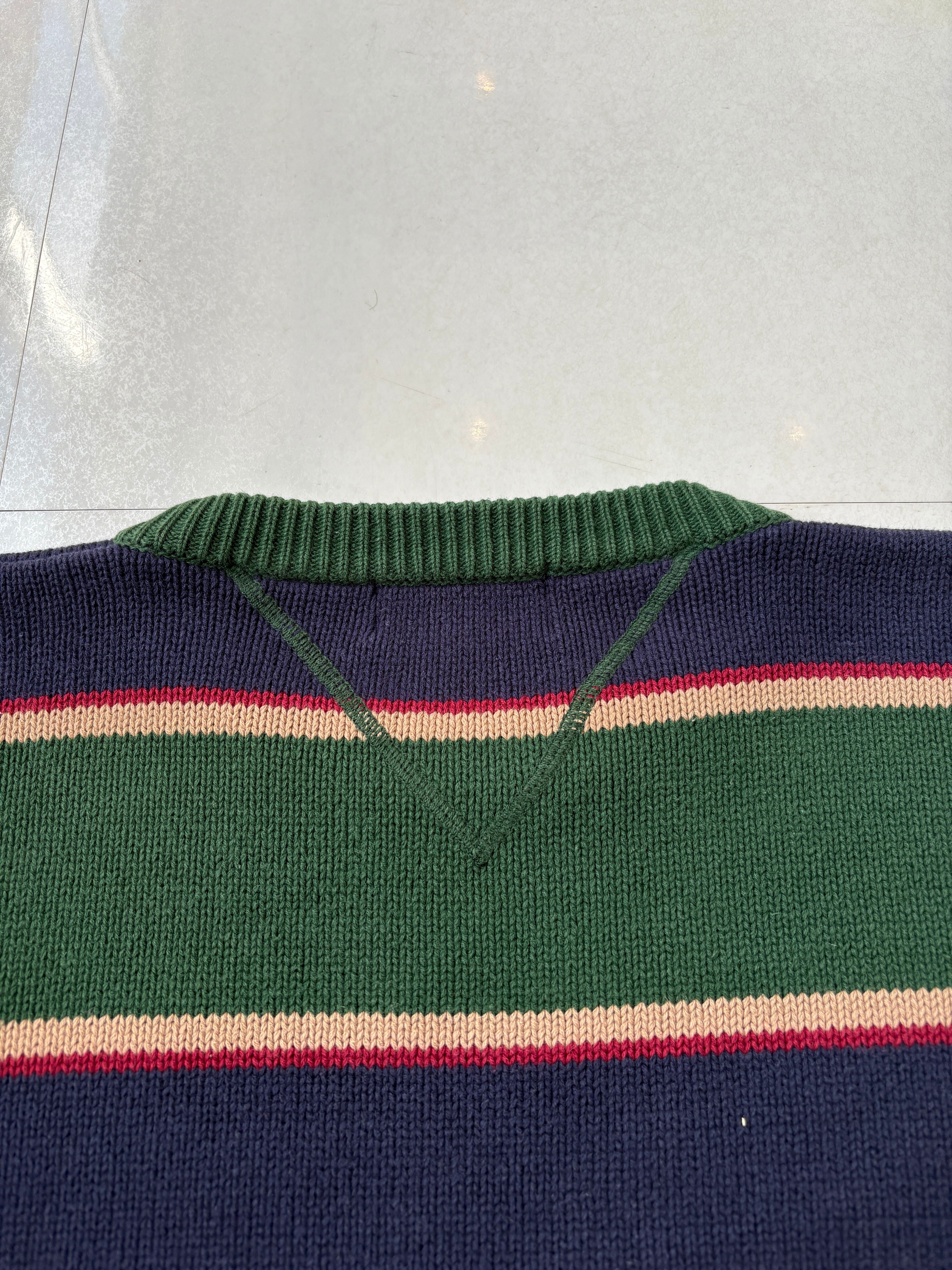 90s eddie bauer bith-side V cotton knit sweater mulch border pattern
